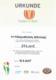 "Tulpen für Brot" unterstützt haben! Ihre Spende kommt bedürftigen Kindern in Äthiopien, Orang-Utan-Waisen auf Borneo und der Kinderkrebshilfe zugute.