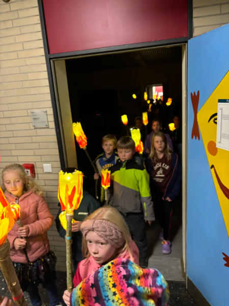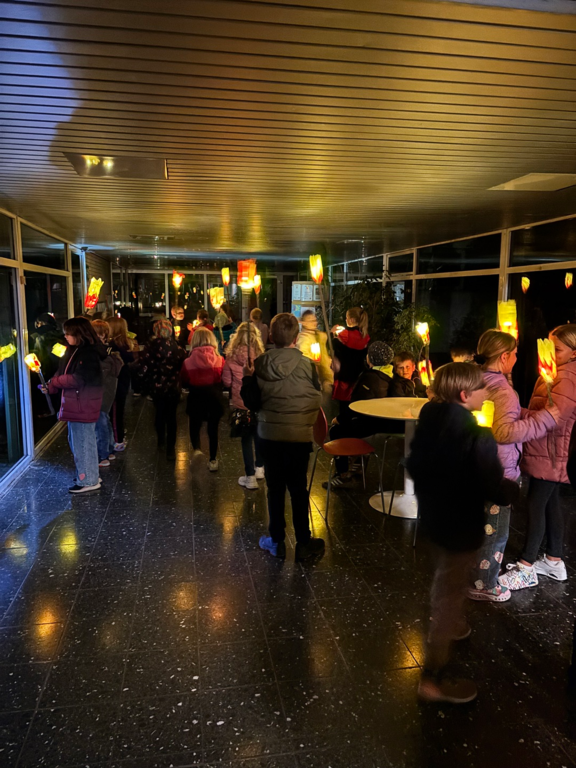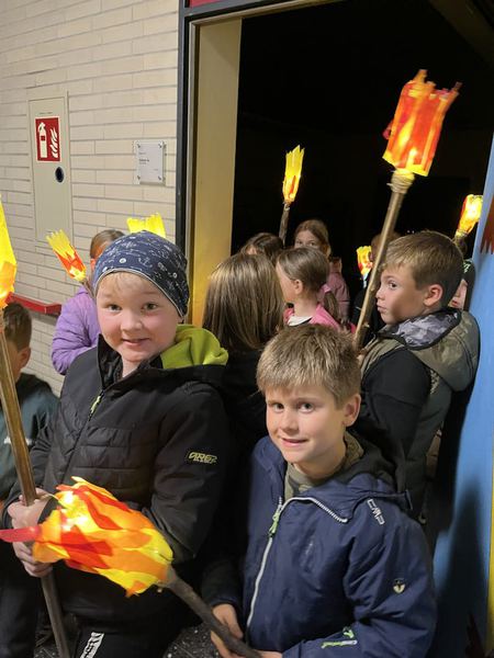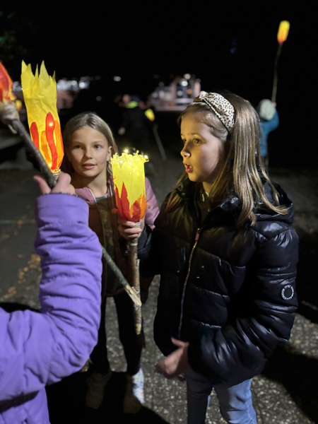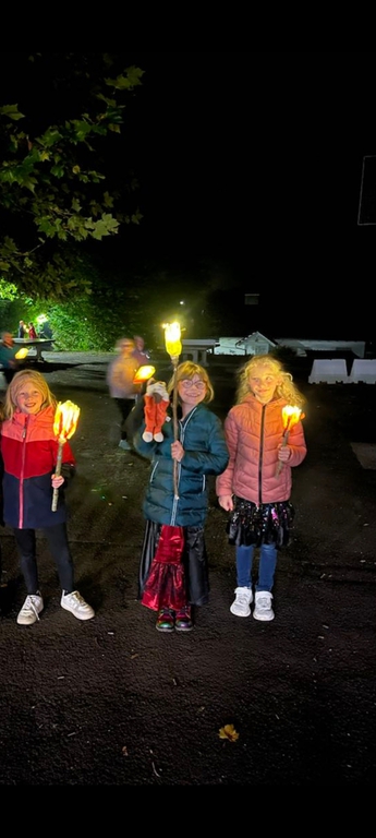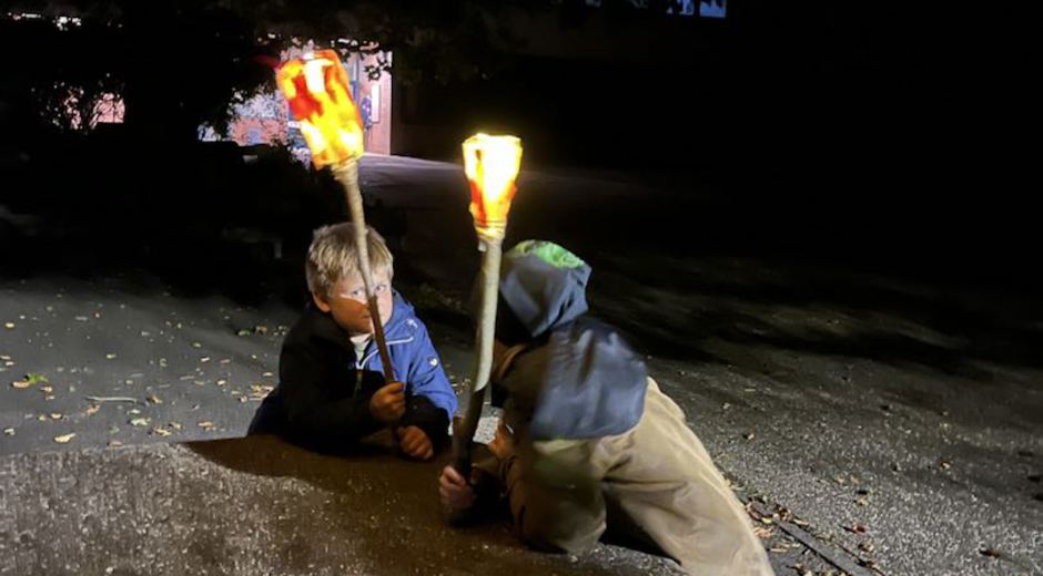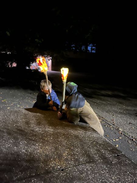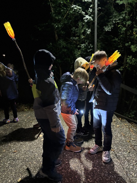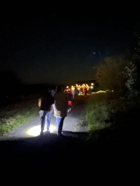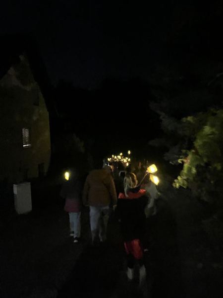 Danach bastelten die Kinder Fackeln aus mitgebrachten Plastikflaschen und Stöcken. Lichterketten brachten die Fackeln stimmungsvoll zum Leuchten und durften bei einer Tour durch das stockfinstere Schulgebäude und einer Nachtwanderung durch Romrod direkt getestet werden.
