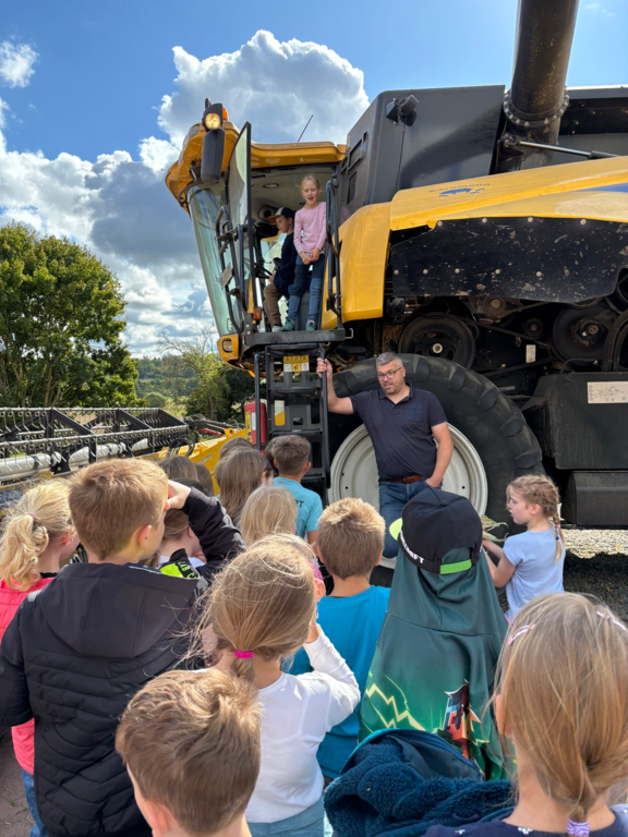 Unter Aufsicht durften die Kinder sogar auf dem Mähdreschersitz Platz nehmen – ein unvergessliches Erlebnis!