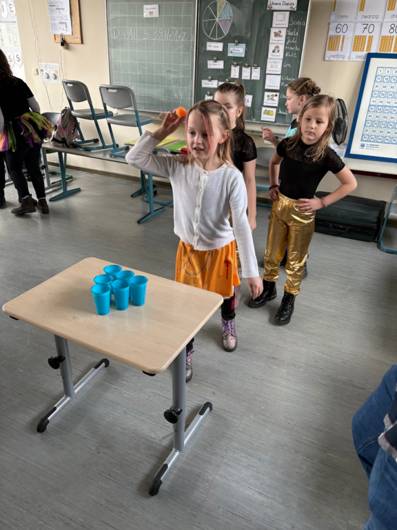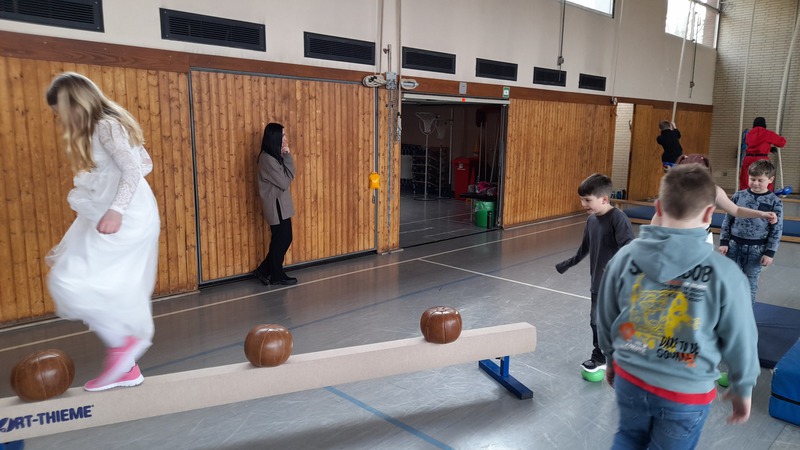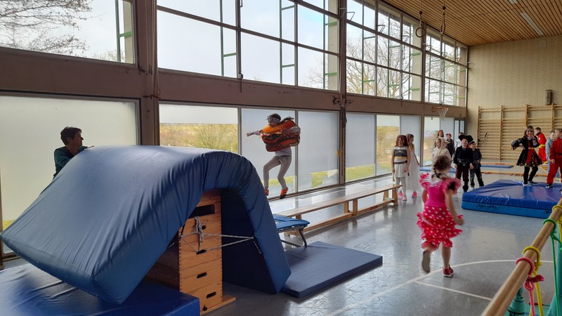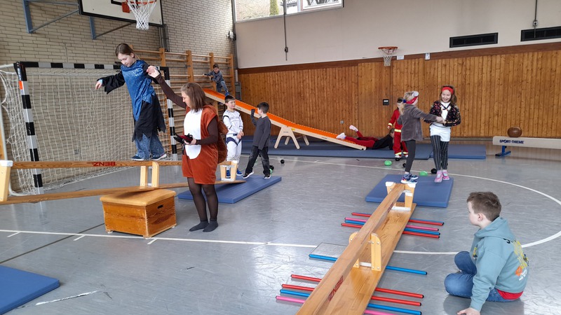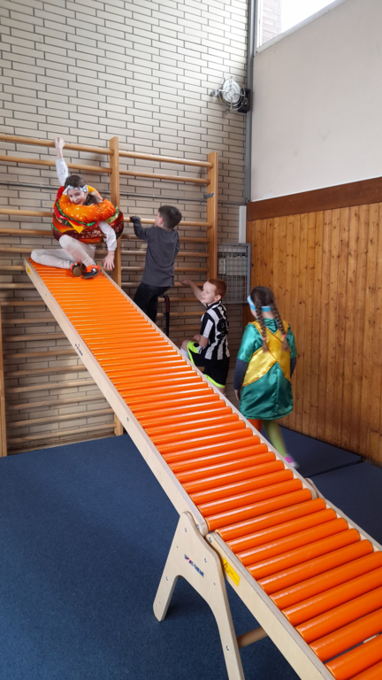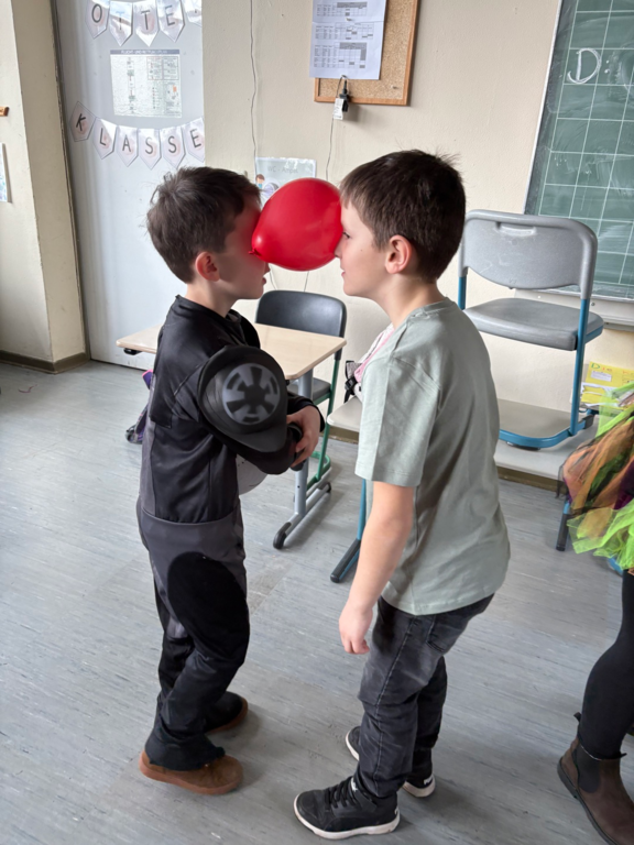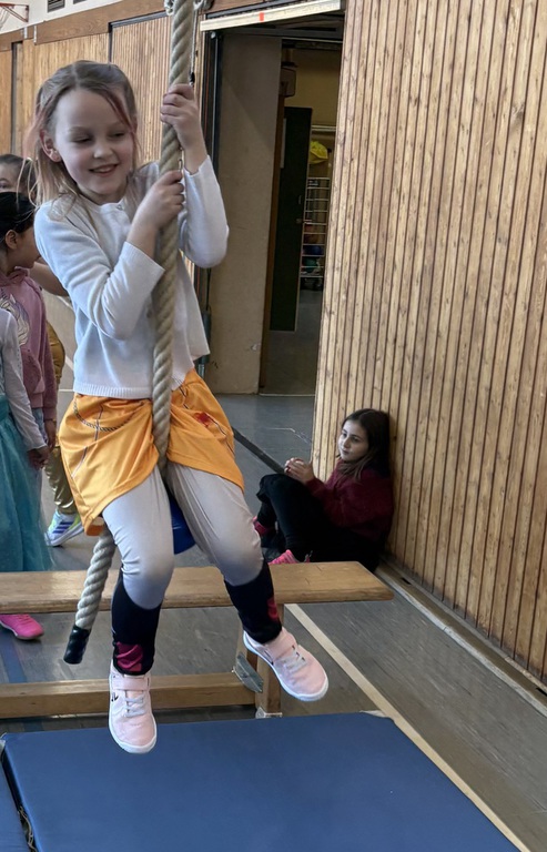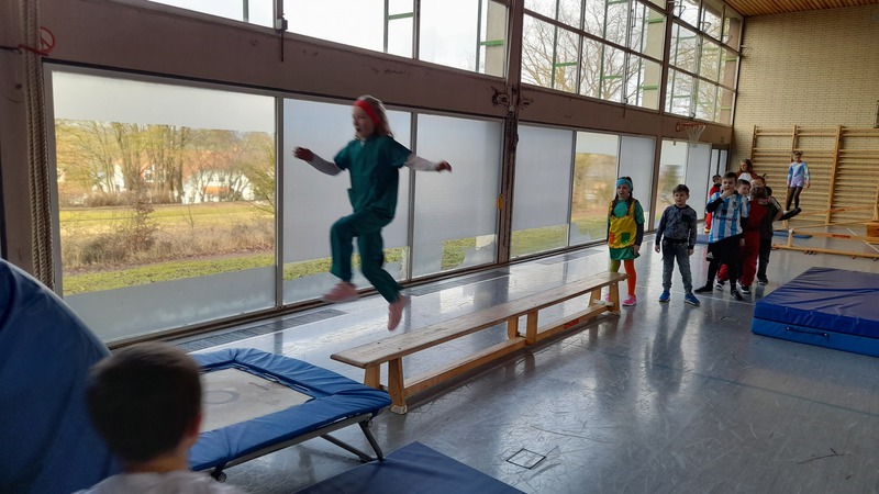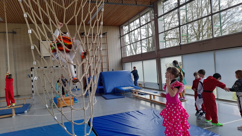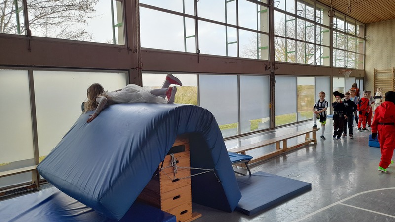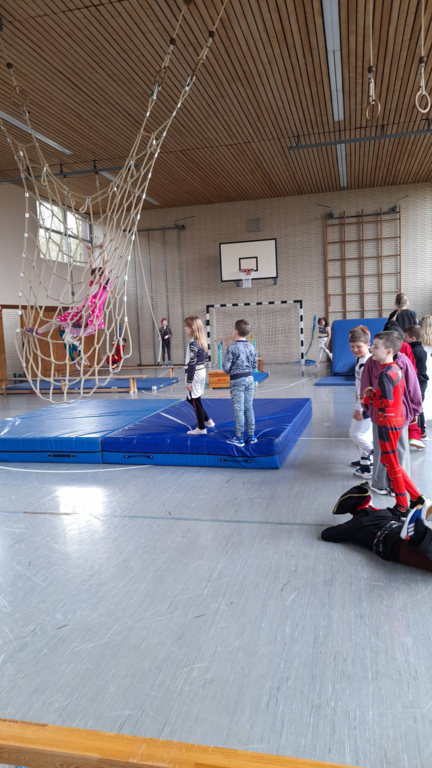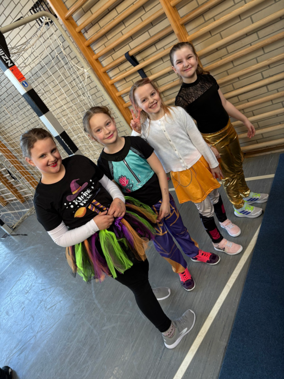 Alle Kinder kamen in fantasievollen Kostümen in die Schule. Ob Prinzessin, Superheld, Tier oder Zauberwesen – der Kreativität waren keine Grenzen gesetzt. Wichtig war uns dabei: Alle Kostüme natürlich ohne Waffen und "sporttauglich". Doch dazu gleich noch mehr.