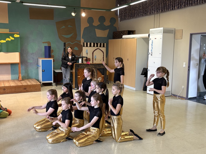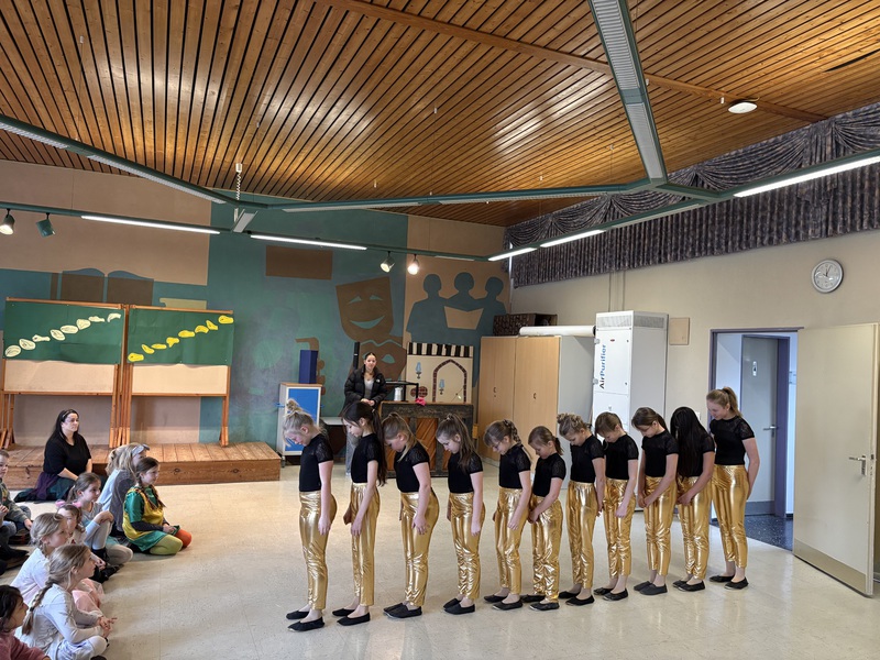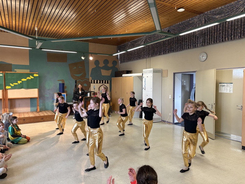In der fünften Stunde wurde es dann noch einmal richtig aufregend: Die große Polonaise zog fröhlich durch das ganze Schulhaus und führte alle Kinder in die Aula. Dort wartete bereits die Zeller Tanzgruppe "Flauschipops" (unter Leitung von Katharina Kornmann und Elena Kelbassa), die uns tolle Tänze präsentierte und für beste Stimmung sorgte. Die Begeisterung war so groß, dass die Kinder lautstark eine Zugabe forderten – und natürlich auch bekamen!