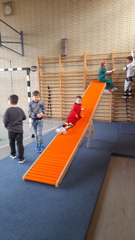 Ein besonderes Highlight wartete auch in diesem Jahr in der Turnhalle: Jede Jahrgangsstufe durfte für eine Schulstunde den liebevoll vorbereiteten Bewegungsparcours unserer Sportlehrkraft Beate Trebert ausprobieren. Mit viel Begeisterung meisterten die Kinder die verschiedenen Stationen und konnten sich so richtig austoben.