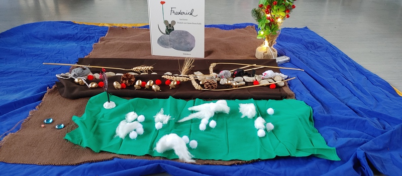 Am diesjährigen Vorlesetag startete die Rehklasse mit einem entspannten Gespräch über eigene Erlebnisse mit Mäusen und den herannahenden Winter. Schnell wurde klar: Nicht nur wir Menschen, sondern auch die Tiere müssen sich auf die kalte Jahreszeit vorbereiten. Passend dazu lernten die Kinder die Maus Frederick kennen – die Hauptfigur aus dem gleichnamigen Kinderbuch von Leo Lionni. Vorgelesen wurde es im Sitzkreis bei einem stimmungsvollen (virtuellen) Kaminfeuer.
