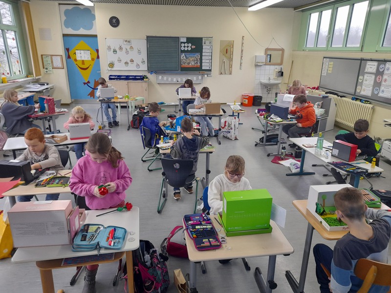 Während der Arbeitsphase halfen sich die Kinder gegenseitig, tauschten Materialien aus und unterstützten einander mit vielen kreativen Ideen. So entstanden fantasievolle und liebevoll gestaltete Märchenszenen. Im Rahmen einer Ausstellung in den jeweiligen Klassenräumen, erhielten die Drittklässler dann Gelegenheit, den anderen Grundschulkindern ihre Ergebnisse zu präsentieren. Diese Präsentation war ein voller Erfolg: die Kinder der Klassen 1, 2 und 4 zeigten sich begeistert.