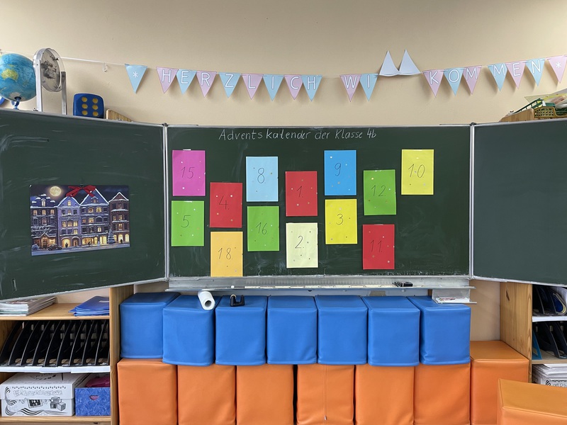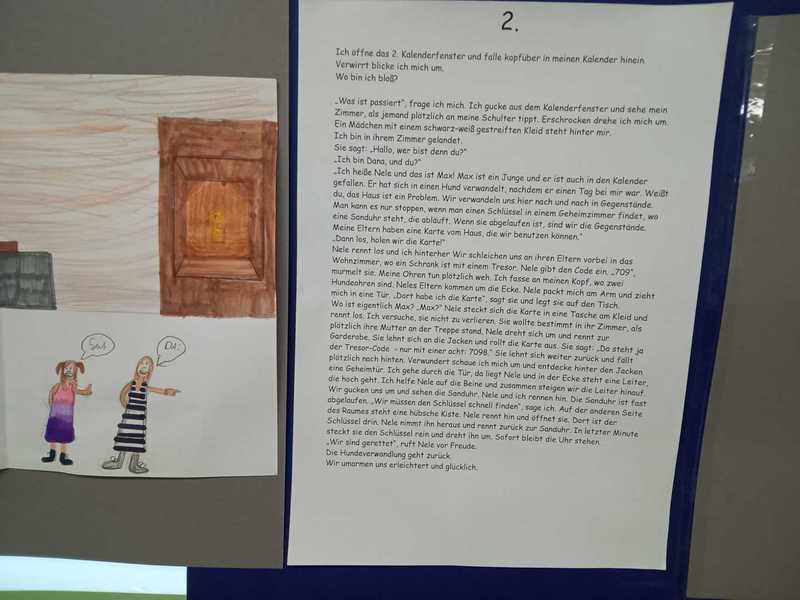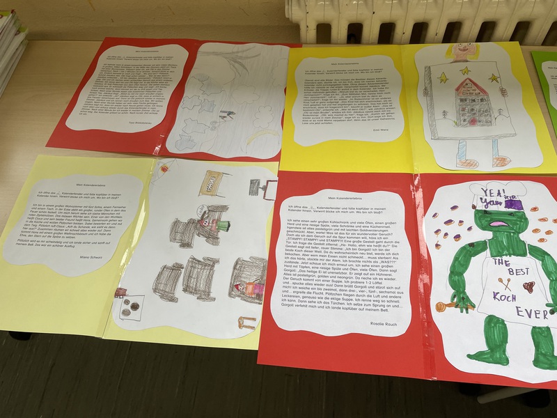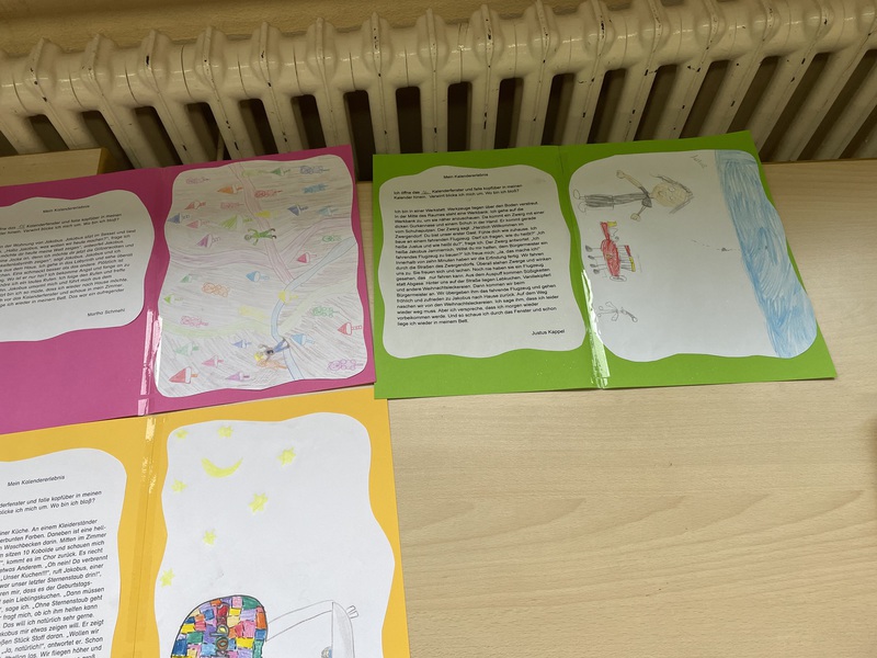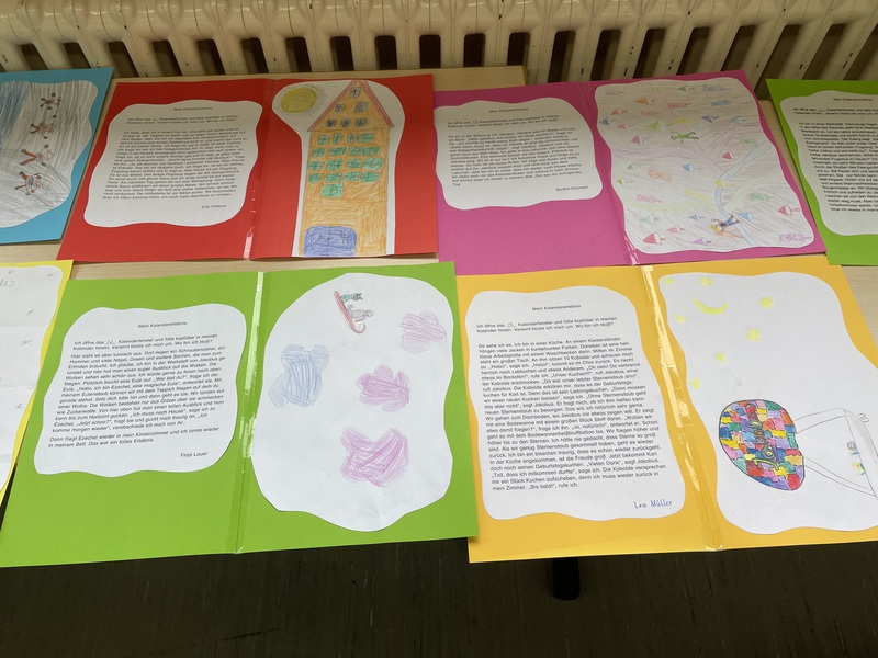 Die Klassenlehrerinnen tippten dann die Geschichten noch einmal ab und bastelten nun einen Adventskalender daraus, welchen die Kinder am 1. Dezember im Klassenzimmer zu ihrer großen Überraschung vorfanden.
